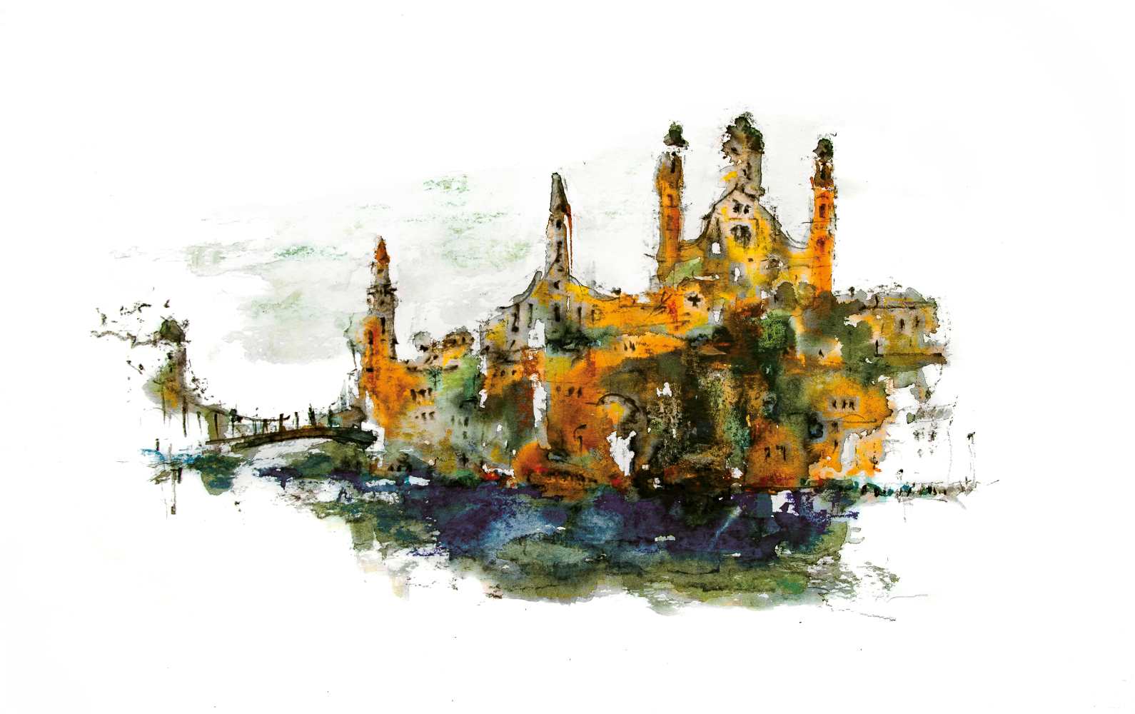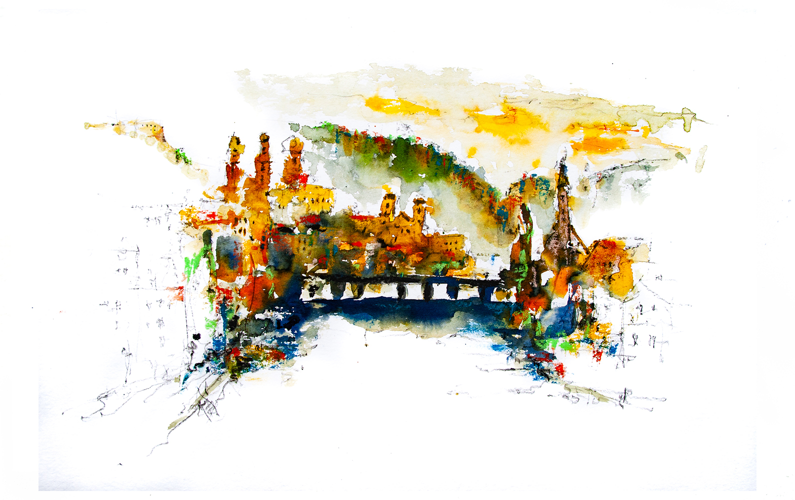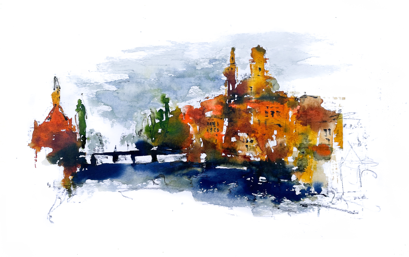 Passau Skizze 50×50 cm, gerahmt mit Passepartout, EUR 580